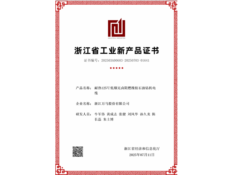 为适应市场前景的发展需求,万马装备线缆旗下的万马专缆,凭借敏锐的市场洞察,其研发团队瞄准市场特性与广阔前景,自主研发生产耐热125℃低烟无卤阻燃橡胶石油钻机电缆新产品。
